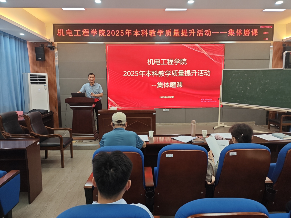 为切实提升课堂教学质量,做好教育教学审核评估准备,确保教师教学能力“人人过关”,机电工程学院于2025年6月18日下午成功举办了本科教学质量月“集体磨课”活动。学院督导组、相关课程主讲教师及部分专任教师和实验员参加了本次活动。