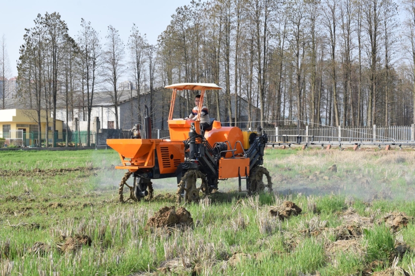 [4] 创制出一次完成“浅耕、灭茬、开沟、播种、施肥、覆土”作业的稻田高稻茬轻简化播种多功能装备。实现南方稻田高稻茬田高质顺畅油菜浅耕机播作业,机具作业有效度96%以上。种床整理质量满足油菜种植农艺要求,产量较常规产品提高5-8%,减少了作业次数,提高了生产效率,降低作业成本。