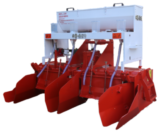 [2] 油菜覆草直播机一是现有成熟机型均只适合北方旱地作业,主要用于小麦、玉米秸秆等的全田覆盖还田,不适合南方黏重土壤稻田油菜种植,机具易缠草、壅泥,影响作业质量;二是提出了将田间稻秸秆收集切碎抛送绕过耕作部件后均匀覆盖于播种行行间的油菜覆草直播种植方法;三是研制了一种动刀、定刀以及风送叶片同轴安装的稻秸秆切碎装置,作业效果好。
