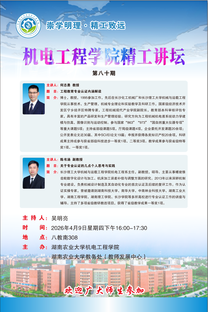 机电工程学院精工讲坛预告(第八十期)