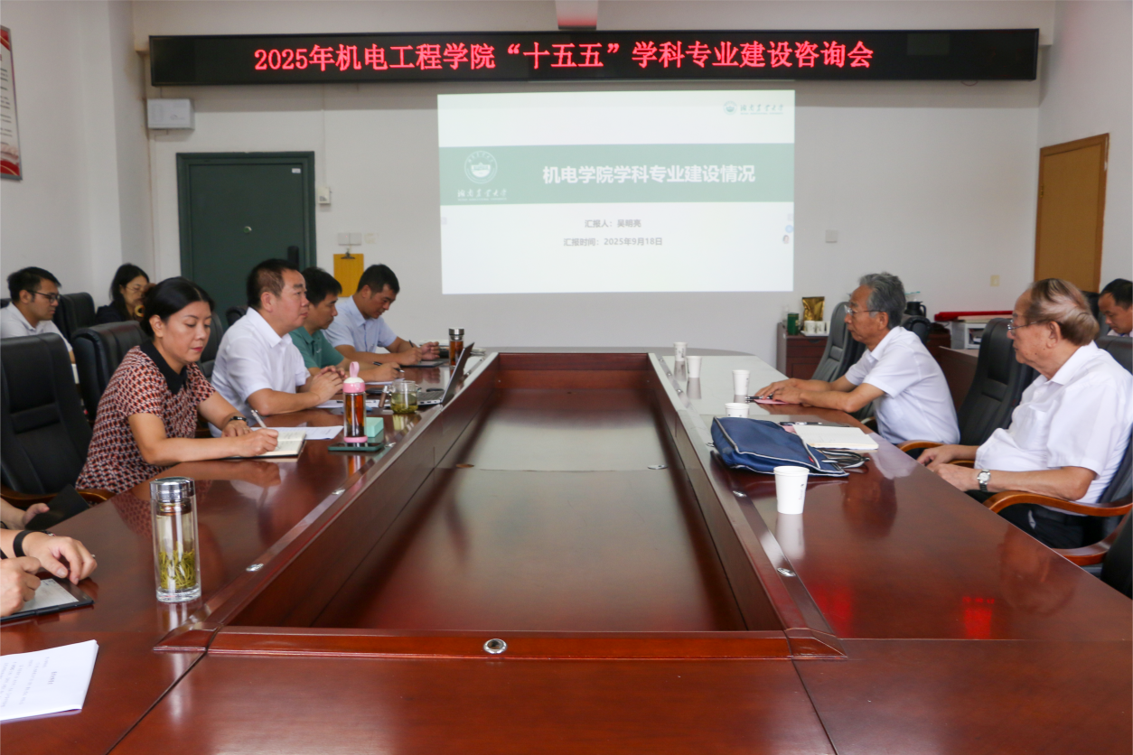 机电工程学院召开“十五五”学科专业建设咨询会,邀请中国工程院院士、华南农业大学教授罗锡文,中国农业机械化科学研究院首席专家方宪法教授到会指导。