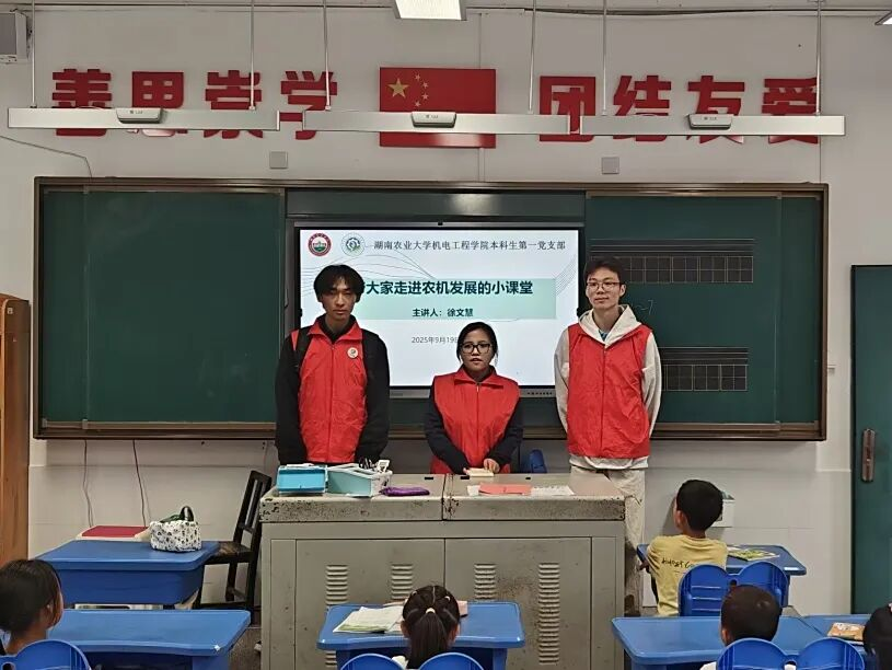 机电工程学院本科生一支部在湖南农业大学子弟小学举办“小学农机课堂”主题党日活动