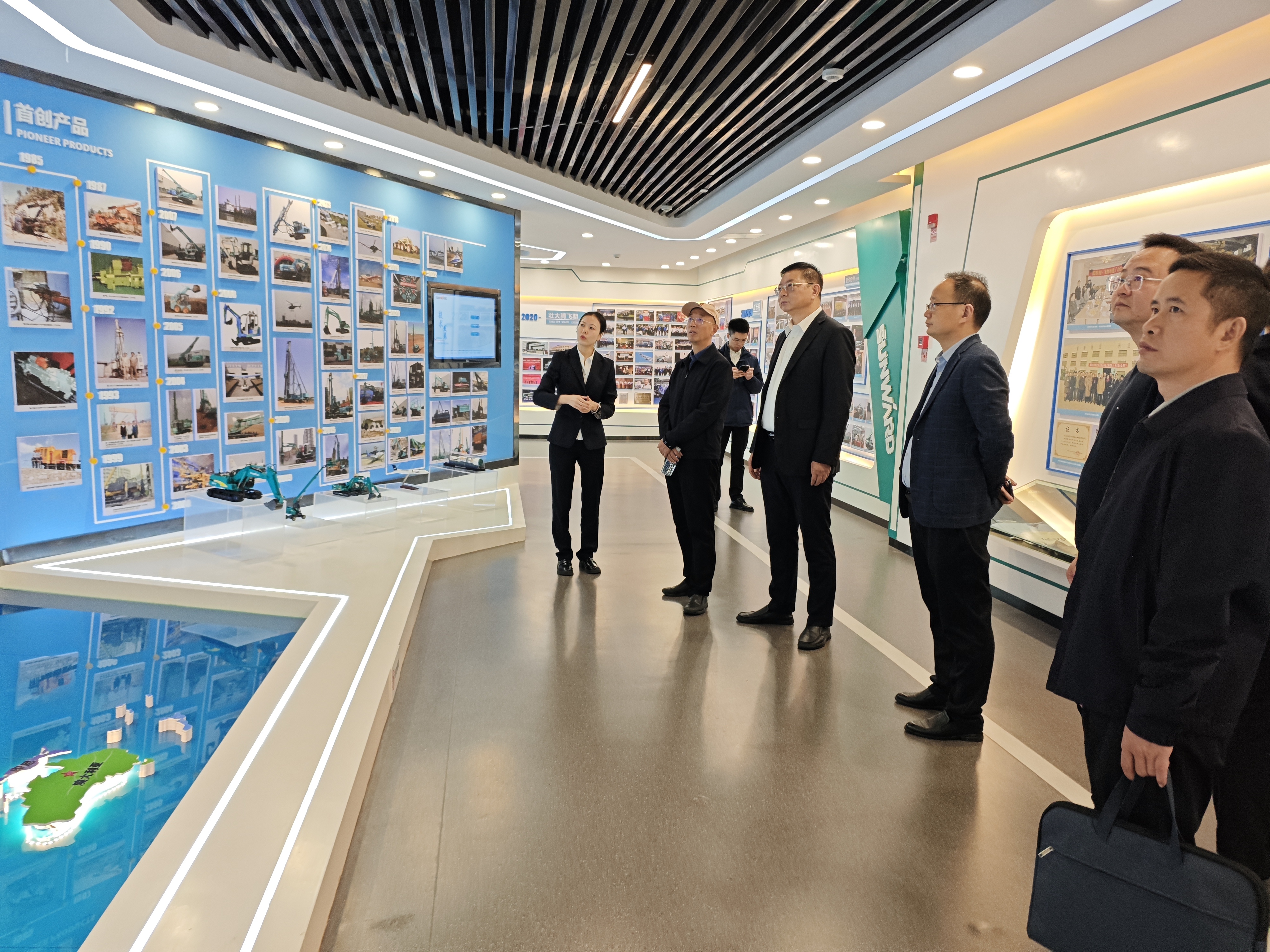 随后,考察组移步至企业文化展厅,张大庆陪同讲解,全面介绍了山河智能的发展历程、创新产品与企业文化,展现了公司从创立至今始终坚持自主创新、智造强国的发展脉络。