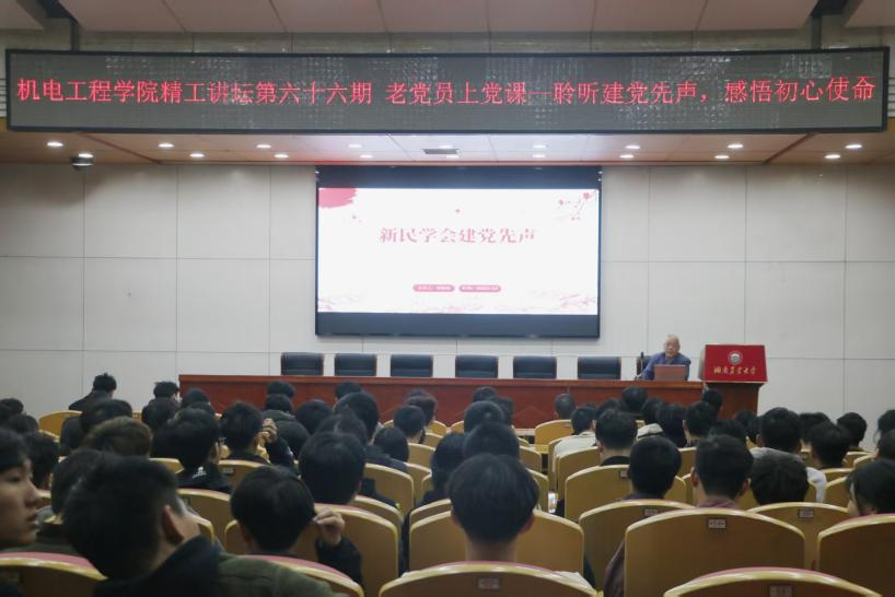 本网讯(机电工程学院 李奔曦儿 全逸倬)10月23日下午,原国防科技大学工程训练中心主任、高级实验师周继伟在八教学海厅开展精工讲坛第六十六期“聆听建党先声,感悟初心使命”老党员上党课。机电学子感悟新民学会“建党先声”,学习和传承新民学会“敢为人先”“率先垂范”“永葆先进”的宝贵品质。本次党课由学院党委书记谢倩主持,学院全体学生党员、入党积极分子参加。