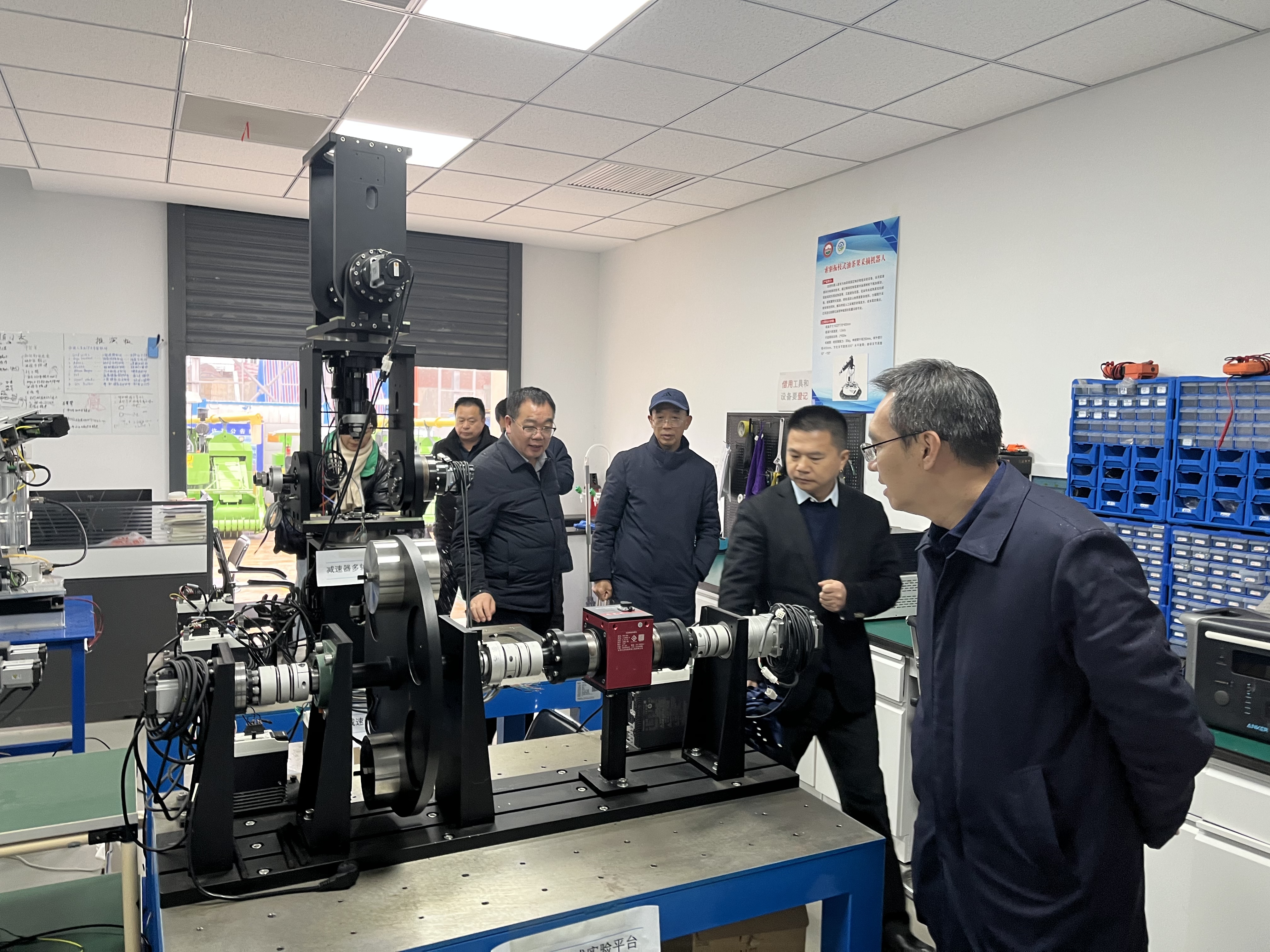 调研期间,龚昕副厅长一行参观了一体化试点项目研究成果,察看在建农机实训楼,室外土槽等农业机械性能及智能智慧化的检验检测实验设施设备。