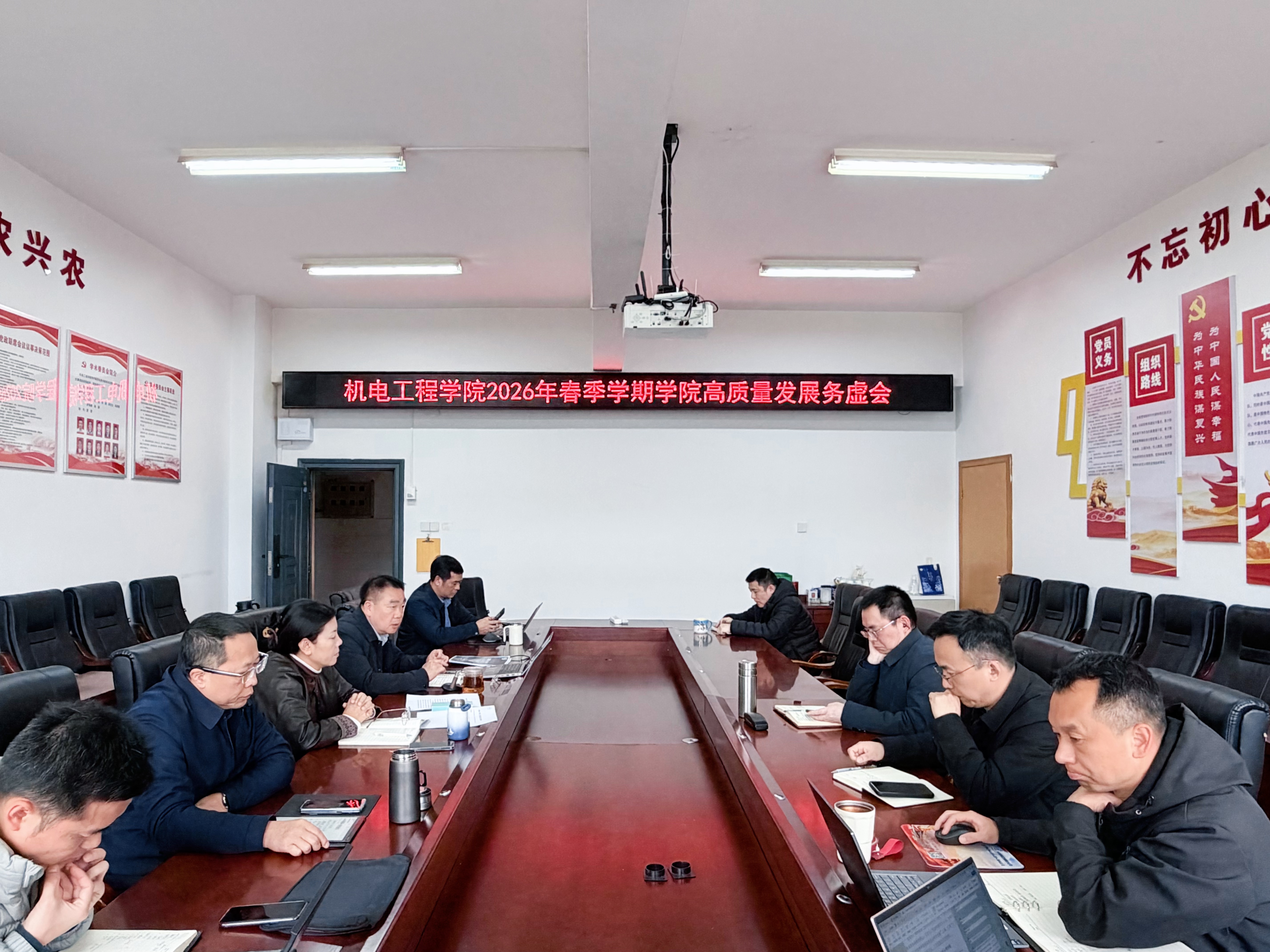 本网讯(机电工程学院 杨日映)2月25日,学院在八教南311会议室召开2026年春季学期学院高质量发展务虚会,会议由院长吴明亮主持,学院领导班子及各科室主任出席会议。
